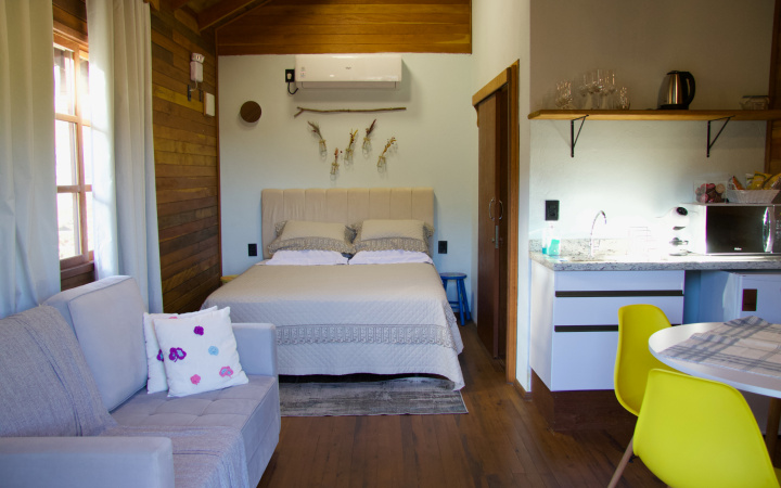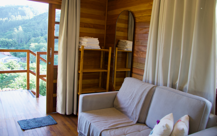 Assim, os hóspedes podem apreciar um chalé em madeira, com sanefa (um tipo de bandô) pintada a mão, com pintura bauernmalerei, considerada a técnica de pintura afetiva, honrando os antepassados e suas habilidades.